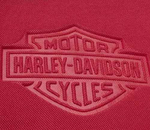 Used on advertising specialty items as well as garments. Embossing involves having a dye of the logo created which is then stamped into the garment. Commonly used on leather products like padfolios and journals. It produces a subtle ‘tone on tone’ finish on garments such as leather jackets, sweatshirts and polyester fleece items.