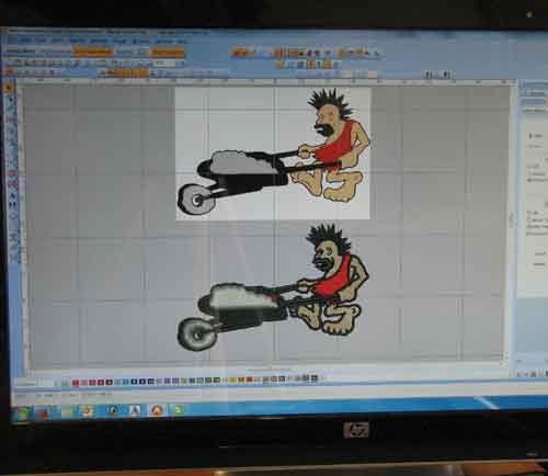 Vinyl decoration involves cad cutting a special vinyl material, designed for garments. The vinyl is heat pressed onto the garment for adhesion. It is used for graphics, names and numbers on most clothing, jerseys, bags, etc. Vinyl is an excellent and more economical alternative to twill decorating.